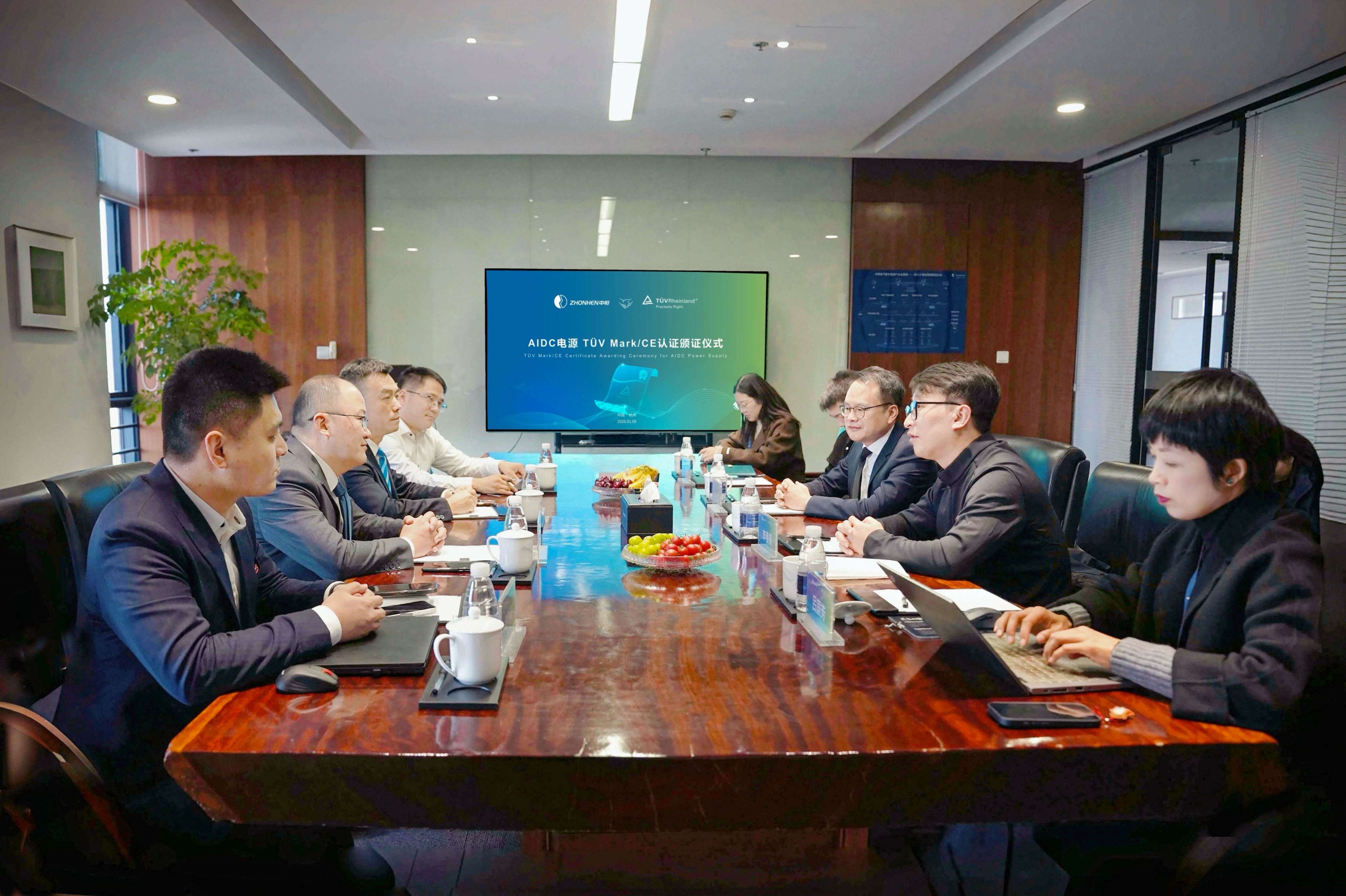 颁证仪式上,TÜV莱茵大中华区电力电子服务总经理董斌先生、开云电竞IDC事业部总经理李善策先生等双方高层出席,开云电竞质量总监李沾露先生主持仪式。此次认证不仅严格遵循国际电气安全规范,更针对AIDC电源的高功率密度、动态响应等特性,在功能安全、可靠性及电磁兼容性(EMC)等领域实施了深度评估。TÜV莱茵特别强调,开云电竞的产品在功率快速变化、长期高负载运行等数据中心极端场景中展现出卓越的稳定性,满足了AI算力中心对电源系统的严苛要求。